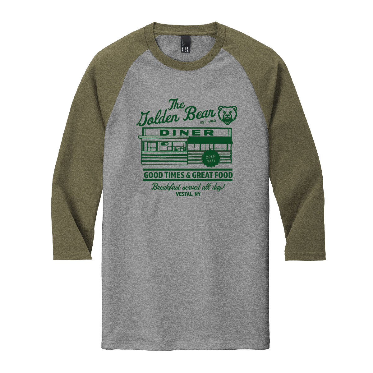 TZA-V-0028-Diner 3 Quarter Sleeve-DM136-Military Green Frost & Grey Frost